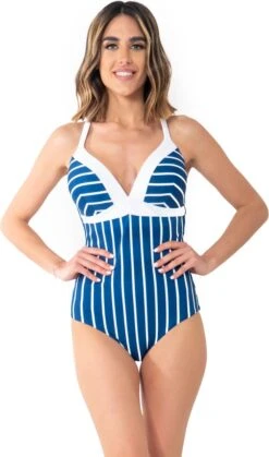 Love in Saint-Barth Badpak 42 van het merk David – Het Love in Saint-Barth Badpak van het exclusieve badmode merk David is een echte eyecatcher! Het blauw met witte gestreepte badpak is voor iedereen te dragen. Het badpak heeft een V-hals en padded cups. De bandjes zijn gekruist en verstelbaar. De verticale strepen maken u optisch slanker. De witte stof rond de voorgevormde cups geven dit badpak net een chiquere uitstraling. Ook verkrijgbaar is de Love in Saint-Barth Bikini-Set. V-hals Padded cups Verstelbare bandjes Materiaal: 80% Polyamide 20% Elastaan. Perfect te combineren met een sarong uit ons assortiment. Ons wasadvies voor lingerie en badmode is altijd handwas. Tip: bestel voor je delicate was een heerlijke fles SOAK , hiermee kun je je was in slechts 15 minuutjes laten “soaken” en bespaar je ook nog eens veel water. DAVID: Het merk David werd geboren in 1952, toen een Italiaanse ondernemer de visie had om badkleding te produceren en op de markt te brengen in het naoorlogse Italië, in een tijd waarin strandvakanties een luxe waren voor weinigen. In de afgelopen decennia heeft het merk zich gevestigd als een referentiepunt voor wie op zoek is naar hoogwaardige producten met een uitstekende draagbaarheid. David begrijpt inderdaad de behoeften van vrouwen en biedt een collectie aan met een breed scala aan maten en met verschillende modellen in verschillende cups. Bovendien ontwerpt en maakt David badkleding altijd met de tijd meegaand en met behoud van de fundamentele principes van traditie, kwaliteit en stijl.