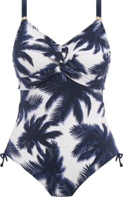 Fantasie’s Carmelita Avenue Twist Front badpak is een gemakkelijke keuze voor styling. Met een flatterend draaidetail bij de buste en verstelbare strikjes aan de zijkanten die een ruche-effect geven en je figuur perfect benadrukt. Uitgevoerd in een Franse marine palmprint tegen een helderwitte achtergrond.