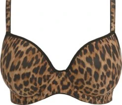 Freya’s Wild Side voorgevormde plunge bh in een ontwerp met luipaardprint dat trouw is aan zijn roots in een kenmerkende combinatie van zwart en bruin. Dit op de Deco gebaseerde model met voorgevormde cups geeft een glad, rond silhouet met een laag middenvoor voor een diepe halslijn.