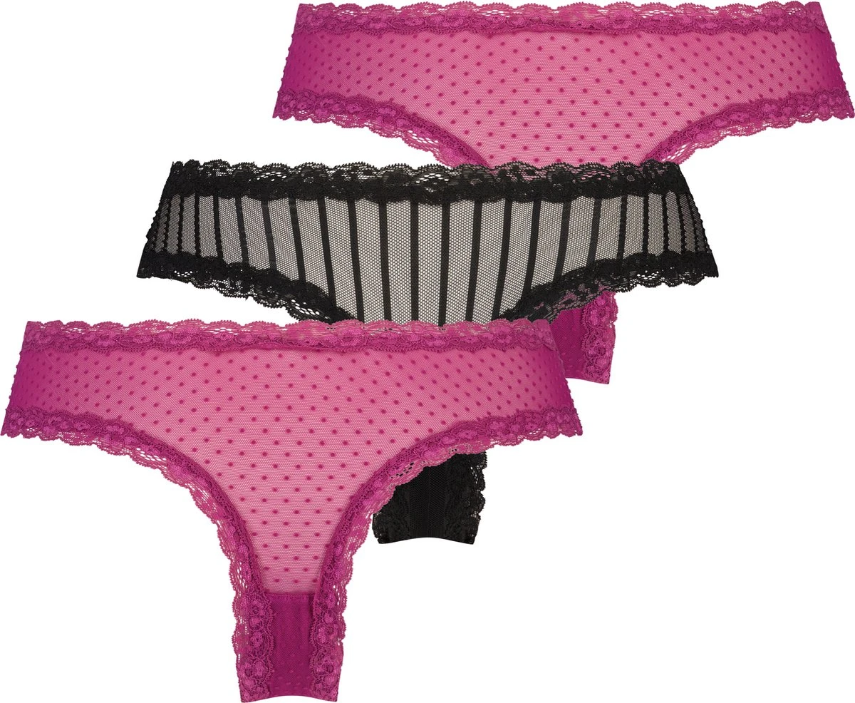 In deze super vrouwelijke brazilians kan jouw dag niet meer stuk! De brazilians zijn afgewerkt met een kanten rand. Super handig verpakt als 3-pack!
