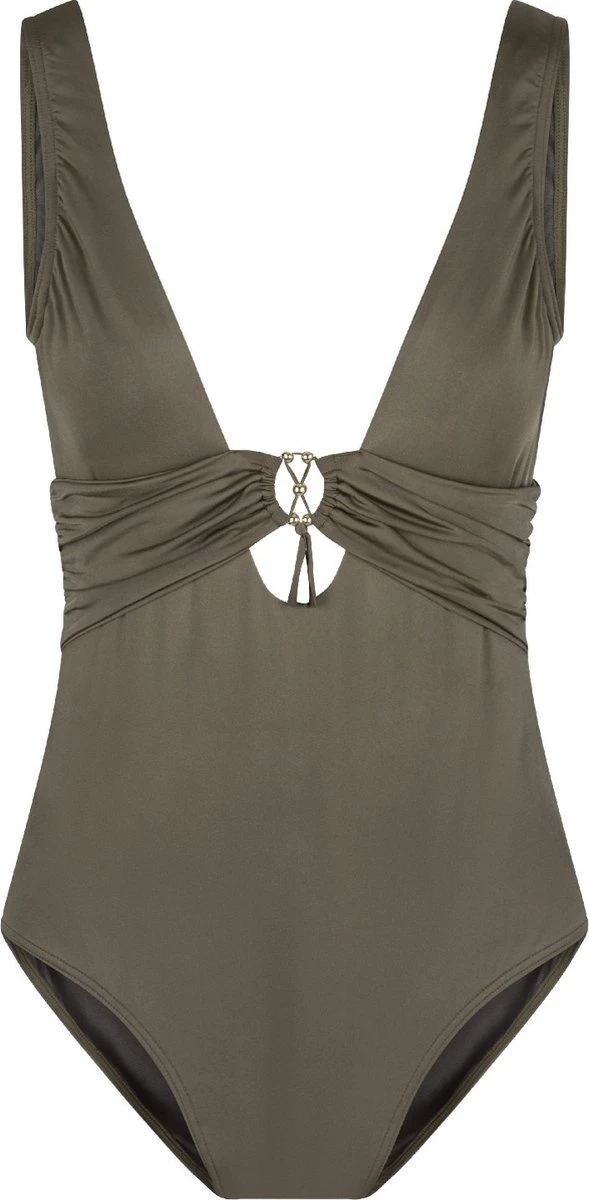 Khaki & Royal Blue… Afgewerkt met haar gouden details zorgt deze serie voor een vrouwelijke, klassieke en trendy look. Met deze serie blijf je niet onopgemerkt deze zomer! Het swimsuit is niet voorgevormd en heeft geen beugel. De diepe cut-out en het gouden detail zorgen voor een sexy look.