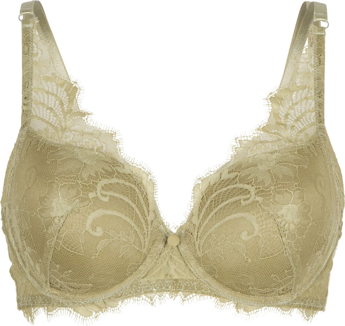 Olive… Een onmisbare kleur, die past bij iedere vrouw. Met de Olive serie ben je helemaal klaar voor de zomer! Deze geheel kanten triangle bh met beugel beschikt over padding in een mooie Olive kleur. De schouderbandjes zijn verstelbaar en afgewerkt met kant.