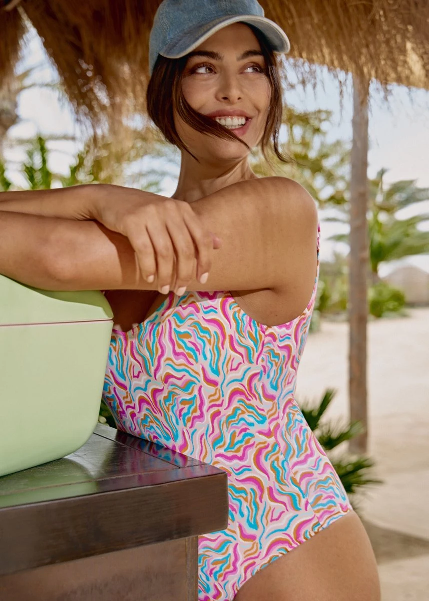 Costa Rica Badpak 75B van het merk Promise – Het Costa Rica Badpak van Promise is een mooi badpak uit de nieuwe zomercollectie van Promise. Fantastische kleurencombinatie met o.a. roze, wit, oranje en blauw en een mooi detail op de rug. Het Costa Rica Badpak heeft voorgevormde cups en verstelbare bandjes. Het badpak heeft geen beugels maar een elastische band onder de cups. De nieuwe collectie is geïnspireerd op de prachtige kleuren van verschillende landen op de wereld. Vrouwelijkheid, delicatesse en kleur is aanwezig in elk van de badkledingstukken. Een collectie ontworpen voor een eindeloze zomer. Bekijk hier de gehele Costa Rica collectie van Promise. Materiaal: 80% Polyester, 20% Elastaan. Ons wasadvies voor lingerie en badmode is altijd handwas. Tip: bestel voor je delicate was een heerlijke fles SOAK , hiermee kun je je was in slechts 15 minuutjes laten “soaken” en bespaar je ook nog eens veel water. Promise is een wereldwijd lingerie modemerk uit Barcelona. De collecties staan voor hoge kwaliteit maar tegen betaalbare prijzen. Daarom heeft Promise ook twee verschillende collecties, de basis collectie en de luxe collectie. Het assortiment bestaat uit een breed scala aan lingerie, nachtkleding, loungewear en badkleding. De collecties worden ontworpen voor elk type vrouw, met verschillende pasvormen en patronen. Maar comfort staat altijd op nummer 1 zonder de trends te vergeten. Alle aandacht, zorg en professionaliteit die ze in alle stappen van het proces van creatie, productie en verkoop hebben gestoken, vormen de basis om Promise al die jaren te begeleiden, maar het is vooral de roeping om vrouwen tevreden te stellen en de liefde voor mode die hen elke dag inspireert.