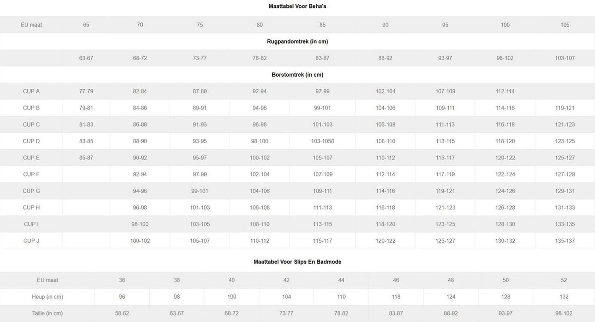 | Maatadvies | Valt normaal: bestel je eigen maat |